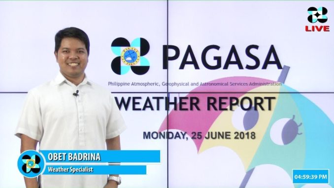Tropical survival Public Weather Forecast Issued at 4:00 PM June 25, 2018 September 16, 2018 John Comments Off on Public Weather Forecast Issued at 4:00 PM June 25, 2018