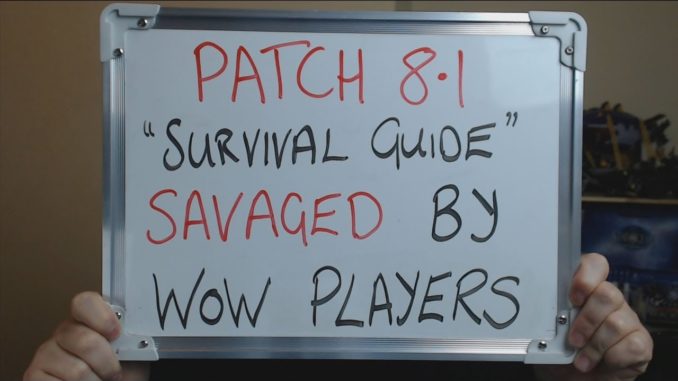 Survival tips and guides PATCH 8.1 Survival Guide SAVAGED by WoW Players !! December 13, 2018 John Comments Off on PATCH 8.1 Survival Guide SAVAGED by WoW Players !!