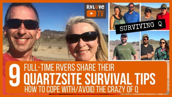 Survival tips and guides HOW TO SURVIVE THE CRAZY OF QUARTZSITE – TIPS FROM 9 FULL-TIME RVers February 21, 2019 John Comments Off on HOW TO SURVIVE THE CRAZY OF QUARTZSITE – TIPS FROM 9 FULL-TIME RVers